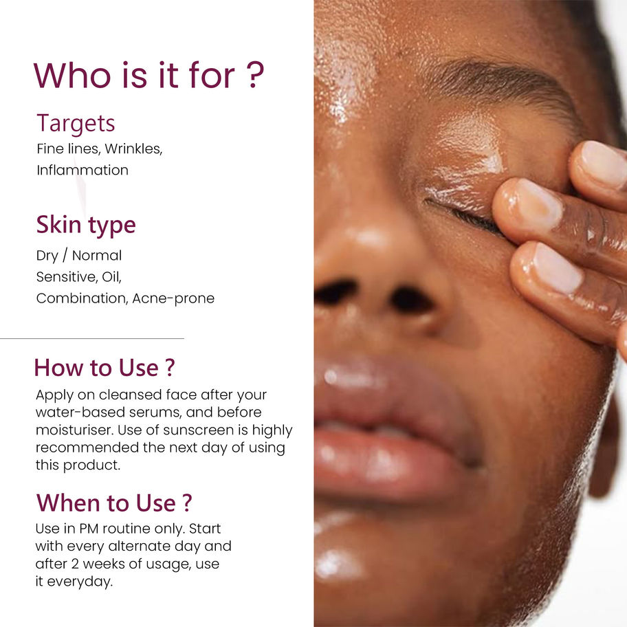 Retinal 0.1% powerful hai but squalane keeps it gentle. Zero flaking or redness. Skin smooth, bright aur firmer ho gaya. Perfect beginner-friendly retinal serum.